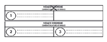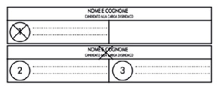 L'elettore ha la facoltà di manifestare DUE voti di preferenza per candidati alla carica di consigliere comunale compresi nella medesima lista votata; scrivendo il nome e cognome, oppure solo il cognome del candidato sull'apposita riga tracciata alla destra del contrassegno.