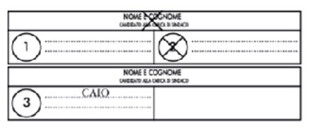 5) CAIO è candidato a consigliere della lista n. 3: il voto va alla lista n. 2 e al candidato a sindaco ad essa collegato; è inefficace la preferenza per il candidato CAIO perchè compreso in una lista diversa da quella votata.